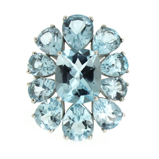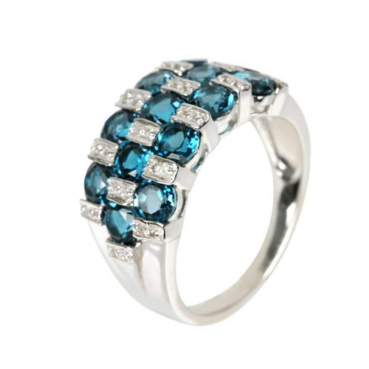 925 Sterling Silver London Blue Topaz Gemstone Cluster Ring