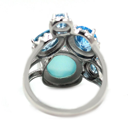 925 Sterling Silver Aqua Chalcedony and Swiss Blue Topaz Gemstone Ring