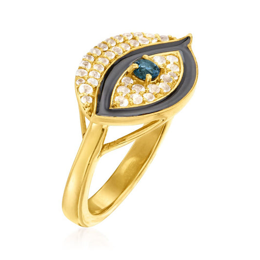 Yellow Gold Plated Over Sterling Silver London Blue Topaz and White Zircon Evil Eye Rings
