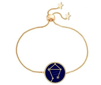 18k Yellow Gold Over Sterling Silver White Zircon And Blue Enamel Zodiac Signs Bolo Bracelets