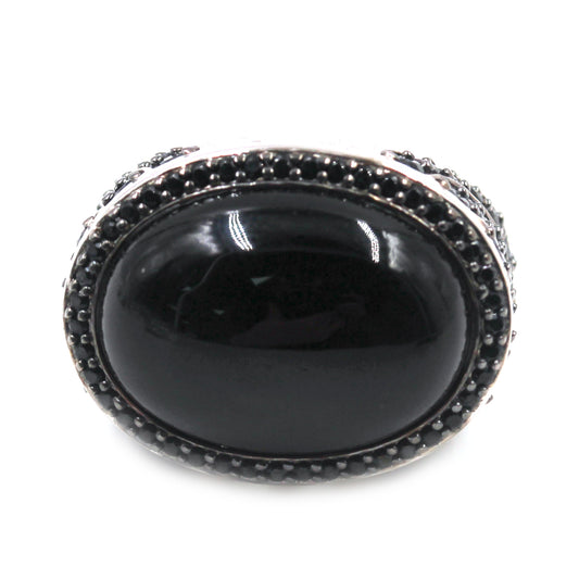 925 Sterling Silver White Topaz and Black Spinel Gemstone Cocktail Ring