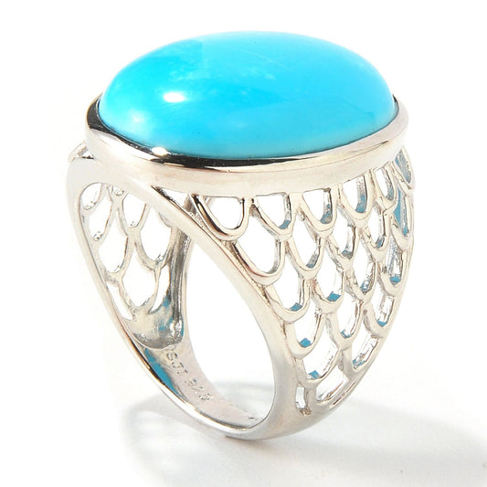 Sterling Silver Oval Cut 13.45Ctw Turquoise " Cocktail " Rings