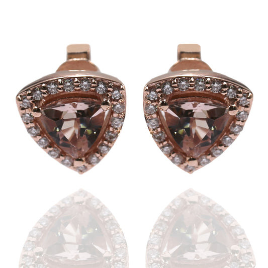 14Kt Gold Morganite, Diamond Stud Earrings