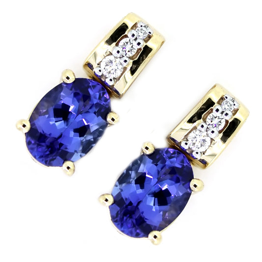 14Kt Yellow Gold Tanzanite White Diamond Stud Earrings