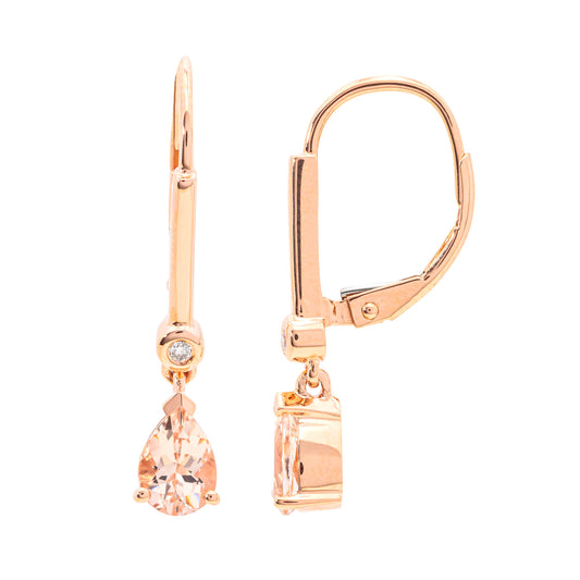 14Kt Gold Morganite, Diamond Gemstone Dangle Earrings