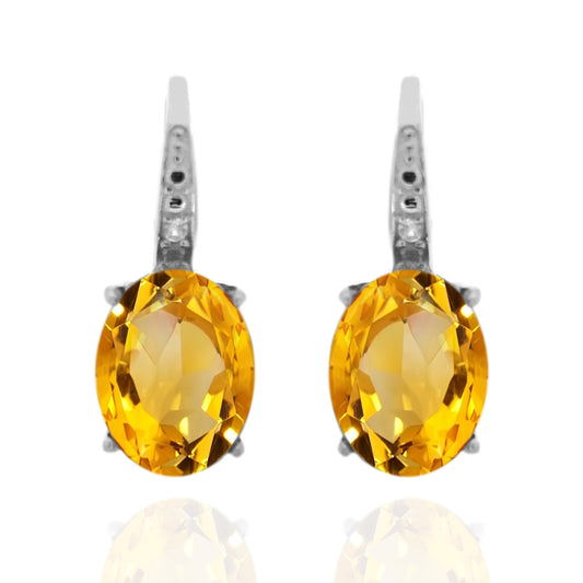 925 Sterling Silver With 9x7 Oval Brazilian Amethyst, Diamond Dangle Earrings