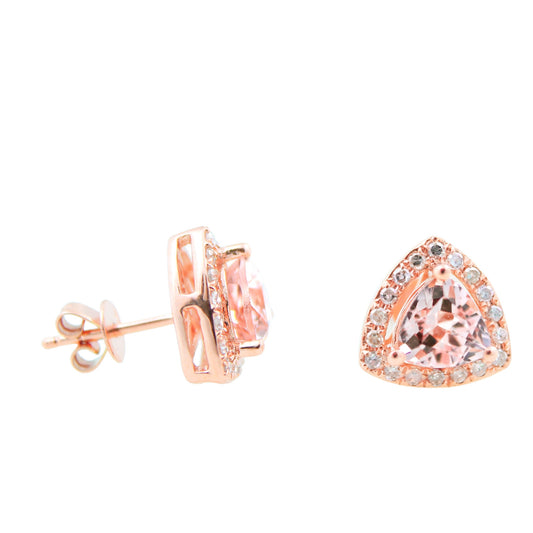 10k Rose Gold Morganite & Diamond Trillion Stud Earrings
