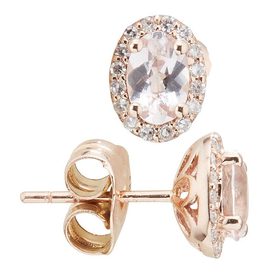 10K Rose Gold Morganite, Diamond Gemstone Stud Earrings