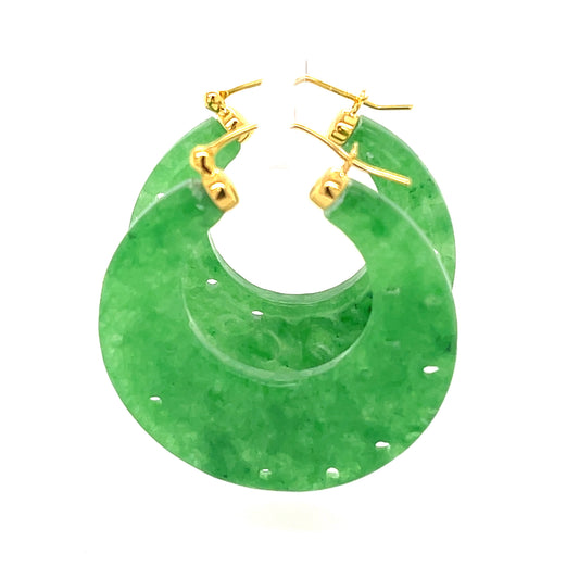 18k Yellow Plating Over Sterling Silver Dyed Green Jade Gemstone Earrings