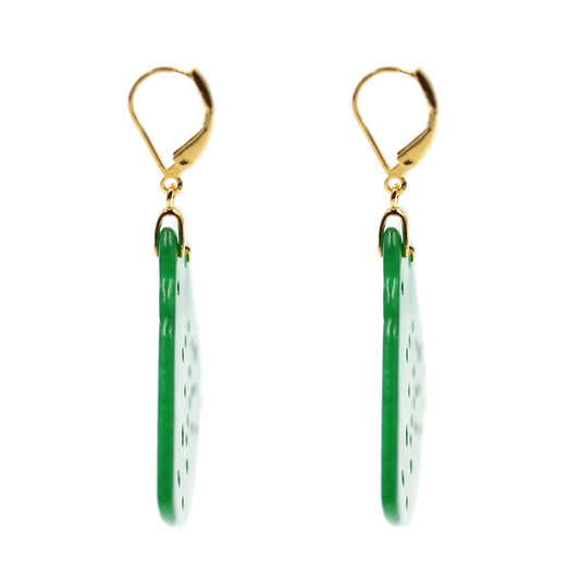18k Yellow Plating Over Sterling Silver Dyed Green Jade Gemstone Dangle Earrings