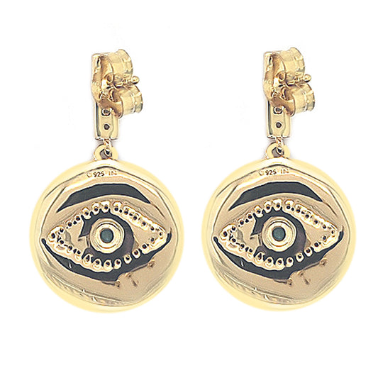 Yellow Gold Over Sterling Silver Campitos Turquoise, White Topaz Evil Eye Dangle Earrings