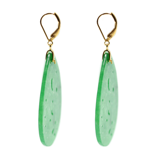 Yellow Over 925 Sterling Silver Dyed Green Jade Dangle Earrings