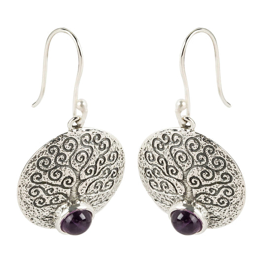 925 Sterling Silver African Amethyst And Created White Sapphire Stud Earrings