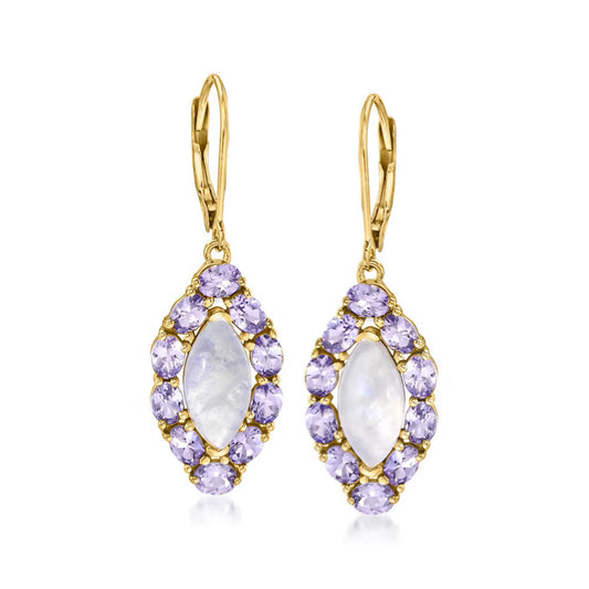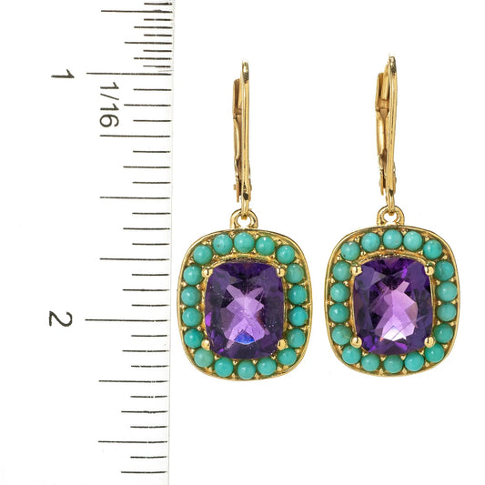 18k Gold Plating Over Sterling Silver, African Amethyst Gemstone Dangle & Drop Earrings