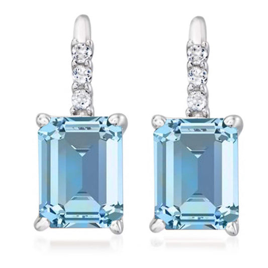 925 Sterling Silver London Blue Topaz, White Zircon Gemstone Dangle And Drop Earrings