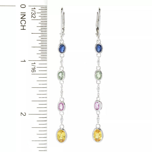 925 Sterling Silver Multi Sapphire Gemstone Drop & Dangle Earrings