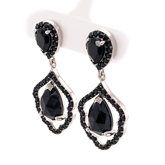 925 Sterling Silver Black Spinel Dangle Earrings