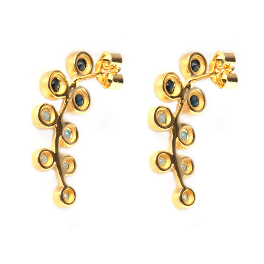 18k Yellow Gold Plating Over Sterling Silver, Blue Sapphire and Swiss Blue Topaz Gemstone, Dangle And Drop Earrings