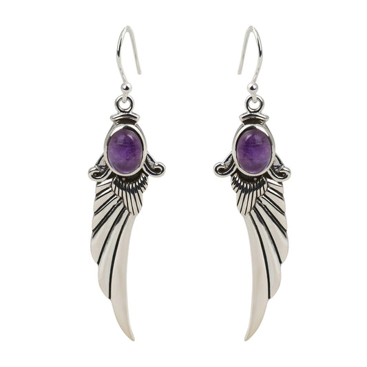 925 Sterling Silver African Amethyst Dangle And Drop Earrings