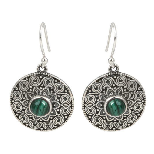 925 Sterling Silver Malachite Dangle Earrings For Women's