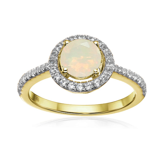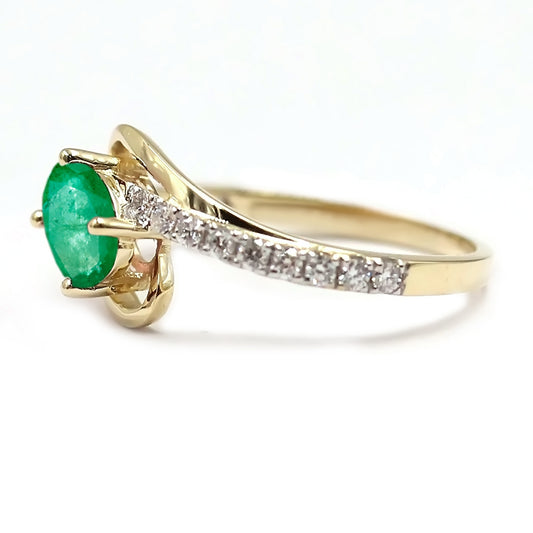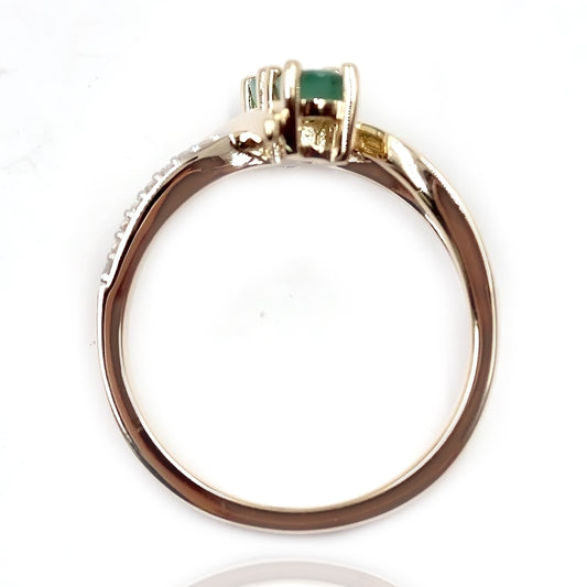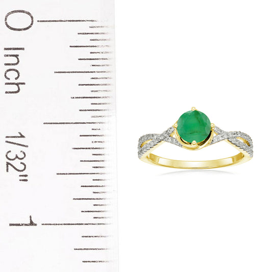 Yellow Gold Plated Over Sterling Silver Sakota Emerald and White Topaz Gemstone Solitaire Ring
