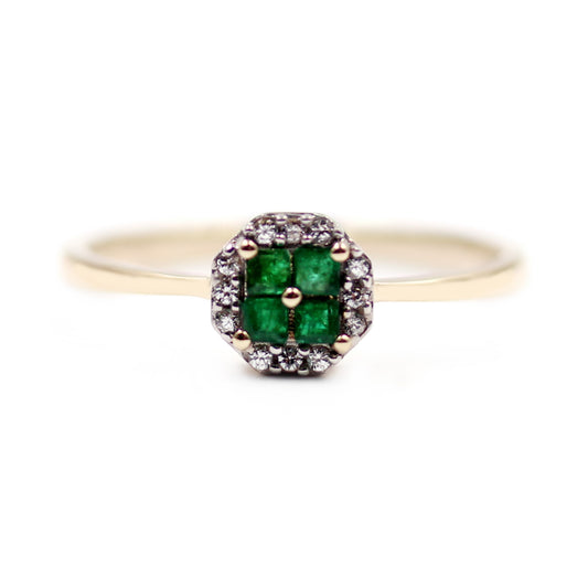 14kt Yellow Gold Zambian Emerald Emerald And White Zircon Gemstone Cluster Ring