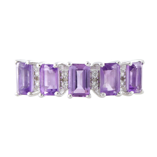 Sterling Silver 1 2/5ct Emerald-cut Amethyst and White Zircon Gemstone Band Ring