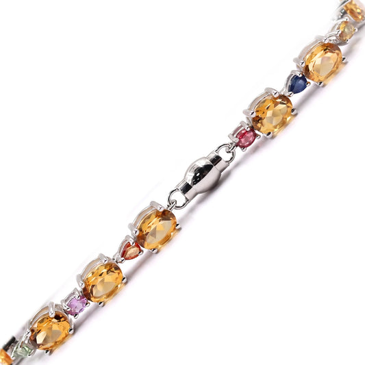 925 Sterling Silver Citrine, Multi Sapphire Tennis Bracelet