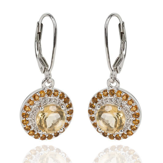 925 Sterling Silver Citrine, White Natural Zircon Gemstone Earrings