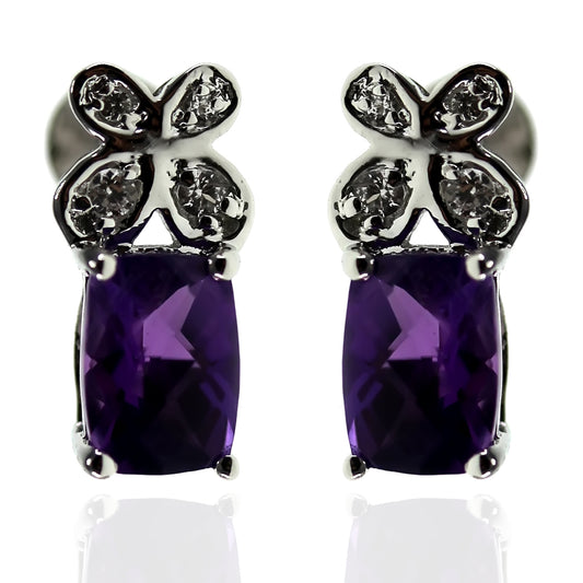 Pinctore Ster Silver Peridot & African Amethyst Butterfly Stud Earrings