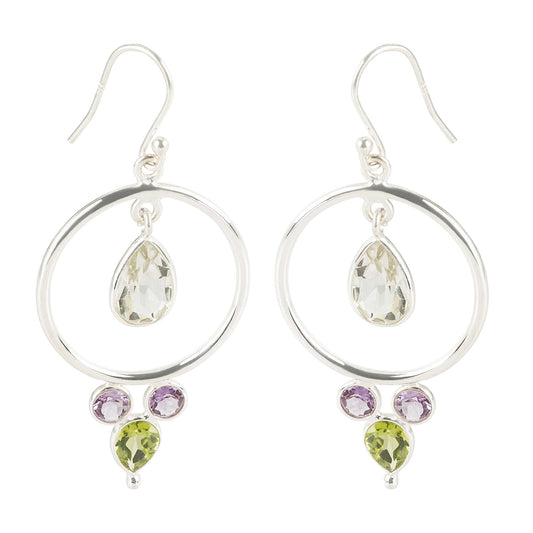 925 Sterling Silver Green Amethyst, Brazilian Amethyst, Peridot Dangle And Drop Earrings