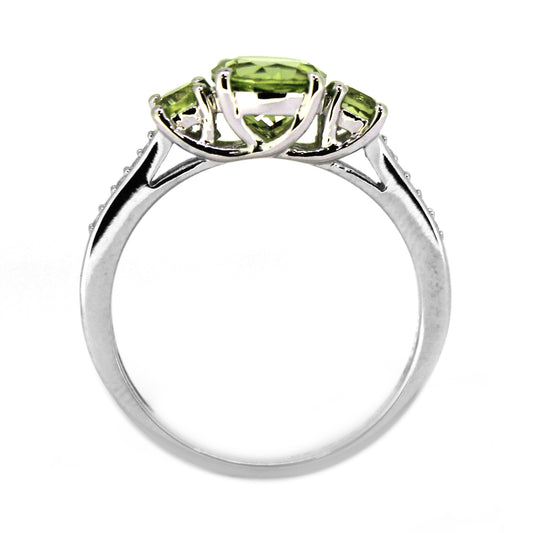 925 Sterling Silver Peridot and Chrome Diopside 3-Stone Ring