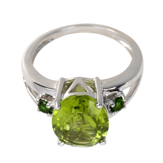 925 Sterling Silver Peridot Gemstone Solitaire Ring