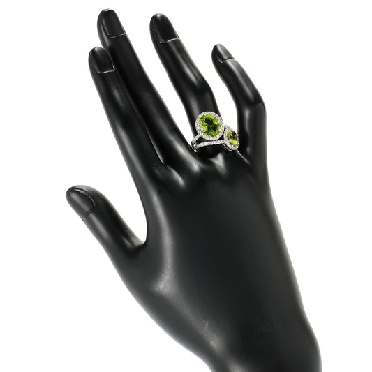 Pinctore Sterling Silver Oval 5.7ctw Peridot & White Topaz Double Halo Ring, Size 7