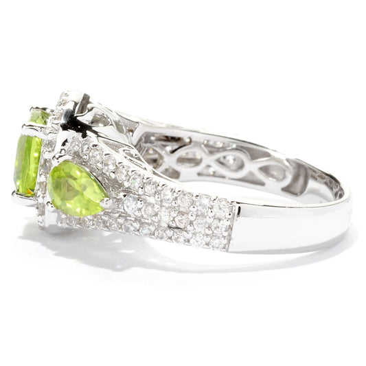 Pinctore Sterling Silver 3.29ctw Peridot & White Zircon 3-Stone Cocktail Ring, Size 7