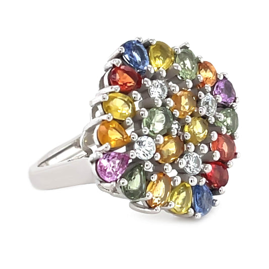 925 Sterling Silver Multi Sapphire And White Zircon Cluster Ring For Women's And Girls