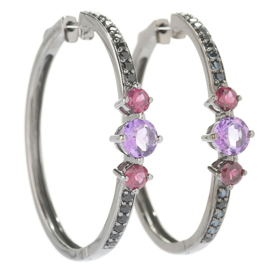 Sterling Silver 2" Black Spinel Inside out Mumma Hoop Earrings