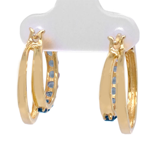 18k Yellow Gold Plating Over Sterling Silver Swiss Blue Topaz Gemstone Hoop Earrings