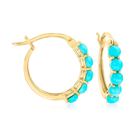 18K Yellow Gold Plated Over Sterling Silver Sleeping Beauty Turquoise Hoop Earrings
