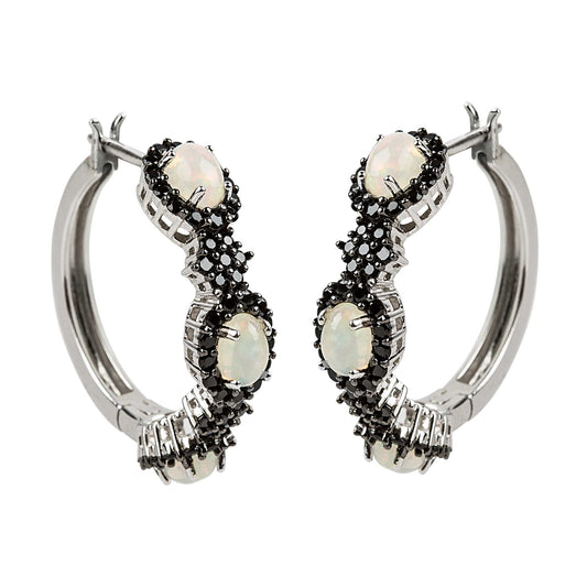 925 Sterling Silver Ethiopian Opal, Black Spinel gemstone Hoop Earrings