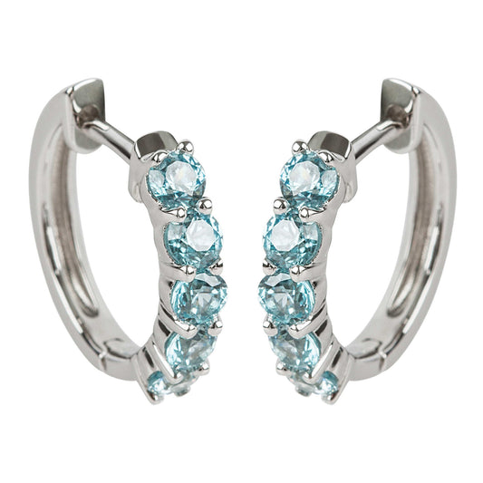 925 Sterling Silver Blue Zircon Gemstone Hoops Earrings