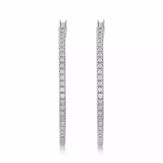 Elegant Rhodium-Plated Sterling Silver Hoop Earrings with 1/4 Carat Round Diamonds – Women's Jewelry