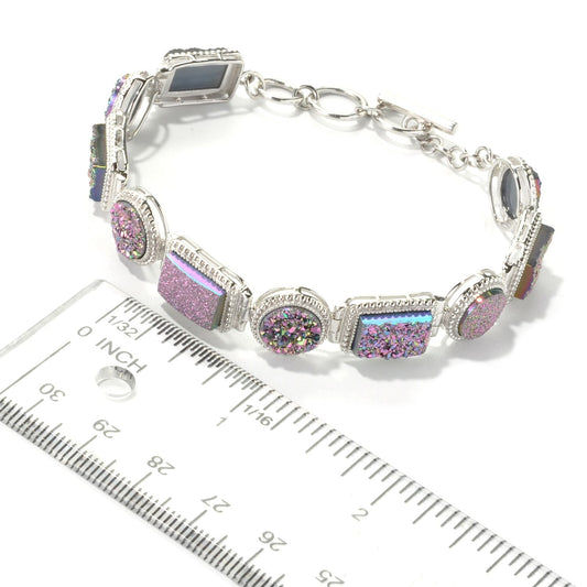 Pinctore Sterling Silver 8" Rectangular & Round Pink Drusy Link Bracelet