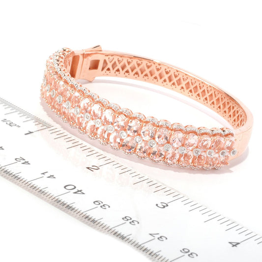 Pinctore 18K Gold Vermeil 146ctw Morganite & White Zircon Hinged Bangle Bracelet