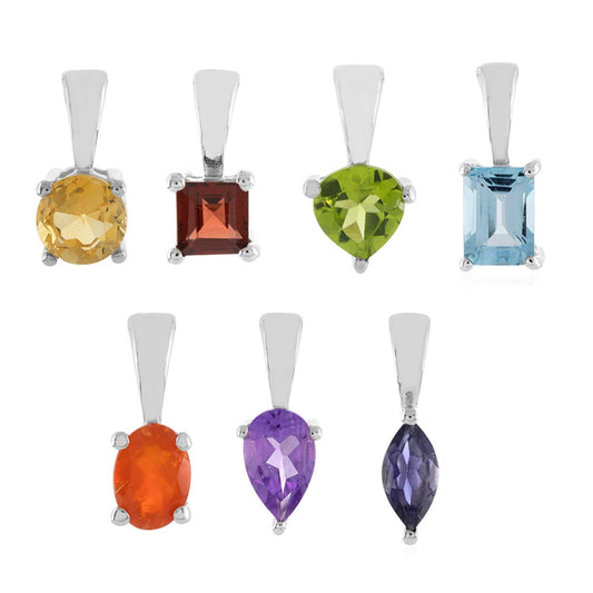 925 Sterling Silver Multi-Gemstone Pendant Set with 18+2" Chain