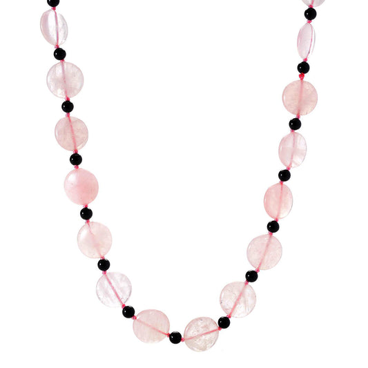 Pinctore 28" 18mm Coin Shaped Green Agate & Onyx Beaded Endless Necklace