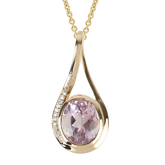 14Kt Yellow Gold Kunzite and Pink Sapphire Gemstone Pendant
