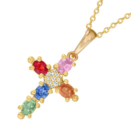 18k Yellow Gold Plating Over Sterling Silver Multi Sapphire and White Natural Zircon Gemstone Pendant