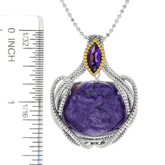 925 Sterling Silver African Amethyst, Charoite Gemstone Pendants