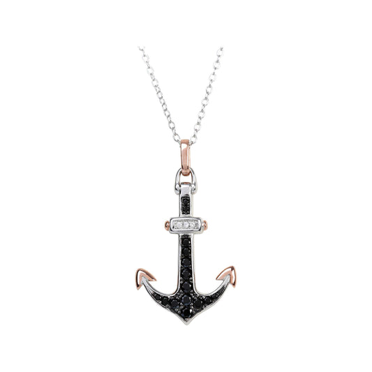 925 Sterling Silver Black Spinel, White Topaz Gemstone " Anchor " Pendants